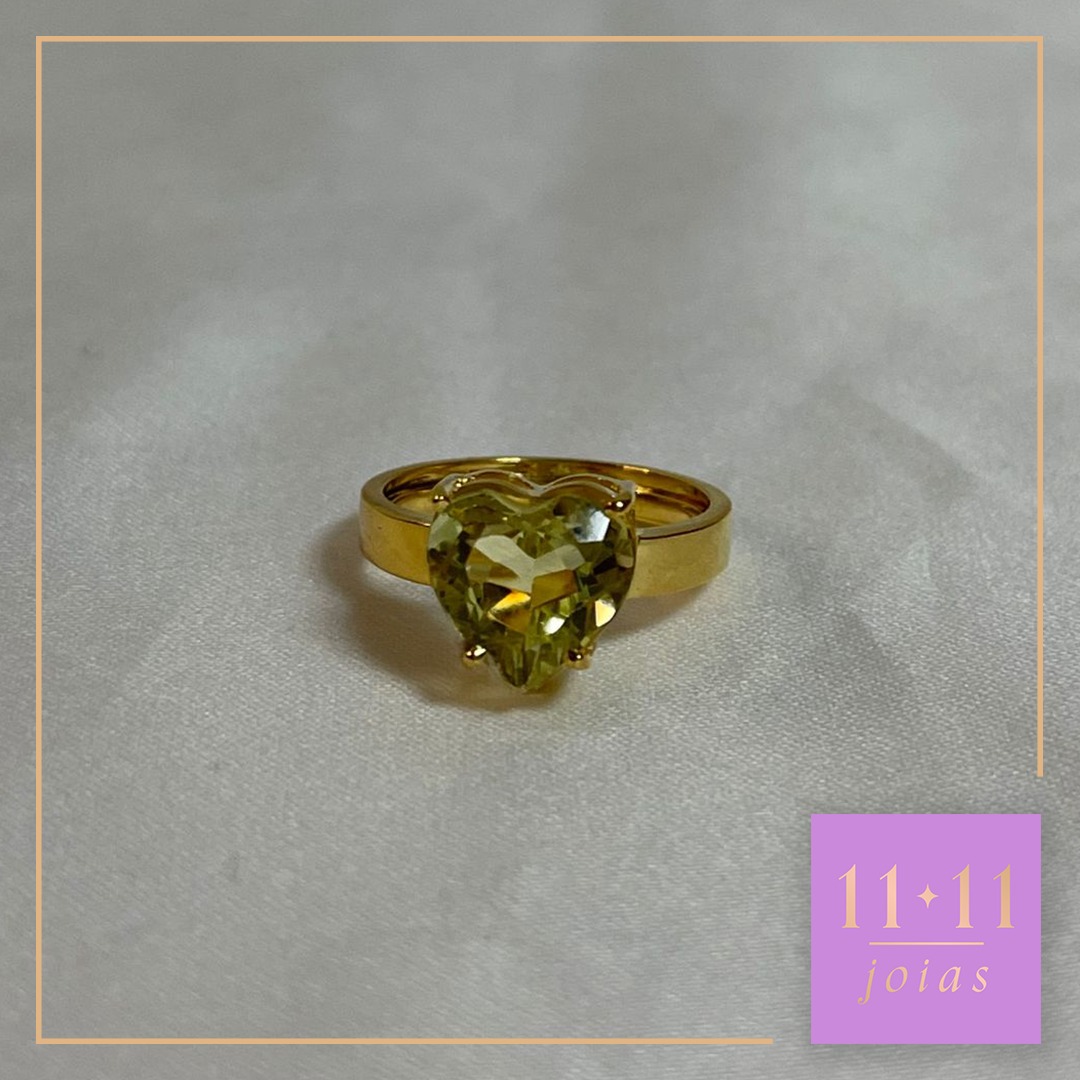 Anel Coração de Citrino Prata 950. Pedra natural com um brilho único!!